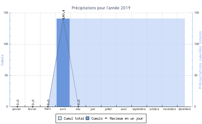 | avril | 2.3 °C | 7.9 °C | 21.9 °C | 15.6 °C | 11.6 °C | 3.6 km/h | 40.3 km/h | ESE |